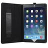 Passgenaue iPad Air Hülle in Schwarz für das Apple iPad Air. Sie besteht aus strapazierfähigem Lederimitat mit fein gesteppter Naht und dezenter Prägung. Auf der Innenseite wurde eine elastische Handschlaufe eingearbeitet, damit das iPad Air unbeschwert mit nur einer Hand gehalten werden kann. Ein besonderer Aufsteller ermöglicht drei verschiedene Standpositionen zum optimalen Betrachten von Fotos und Videos. Das integrierte Smart Cover unterstützt die iPad Sleep & Wake Funktion. Eine doppelt genarbte Stylus-Schlaufe erlaubt Ihnen einen Stylus Stift einzuführen (Stift nicht mitgeliefert). Anschlüsse, Mikrofon, Helligkeitssensor, Lautsprecher und beide Kameras des Apple iPad Air bleiben in der Hülle problemlos bedienbar. Zuhause oder unterwegs bleibt das Tablet somit effektiv vor Schmutz, Stößen und Kratzern beschützt.