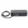 Das ThinkPad OneLink + Dock (40a4), angetrieben durch Lenovos revolutionäre OneLink + Technik verwandelt Ihr neues ThinkPad in eine voll funktionsfähige Maschine im Büro oder zu Hause. Der neue praktische OneLink+ Anschluss liefert nicht nur superschnelle Datenübertragungen mit USB 3.0 und bis zu Ultra High Definition (UHD) Video, sondern lädt auch Ihr Notebook, Handy und Tablet während Sie arbeiten oder spielen!Im Gegensatz zu USB Docks liefert das OneLink+ Dock Video ohne Komprimierung, ohne Treiber und ohne Auswirkungen auf Bildqualität und Notebook-Leistung. Verbinden Sie Ihr Notebook einfach mit dem ThinkPad OneLink+ Dock und verbinden Sie sich über einen praktischen Einzelanschluss mit Strom, Internet und Arbeitsplatzzubehör. Erwarten Sie mit Anschlüssen für zwei externe Displays, eine Tastatur, eine Maus und einen Drucker ein hervorragendes Preis-Leistungs-Verhältnis. Es wird auch mit einem ThinkPad 90-W-Slim-Tip-Netzteil geliefert.Die Dockingstation ist mit einem Stereo-/Mikrofon-Kombinations-Audioanschluss und zwei USB 3.0-Anschlüssen an der Vorderseite ausgestattet, von denen einer als „Immer (Strom) an“-Anschluss zum Aufladen von Mobilgeräten dient. Auf der Rückseite befinden sich zwei USB 2.0-Ports und zwei USB 3.0-Ports, die eine maximale Gerätekonnektivität ermöglichen. Das OneLink+ Dock verfügt außerdem über einen 10/1000-Gigabit-Ethernet-Port, einen VGA-Port und zwei DisplayPort 1.2-Ports für bis zu 3 Videoausgänge* mit einer maximalen 4k2k-Auflösung**. Zur Sicherheit kann das Dock über ein Kabelschloss gesichert werden.